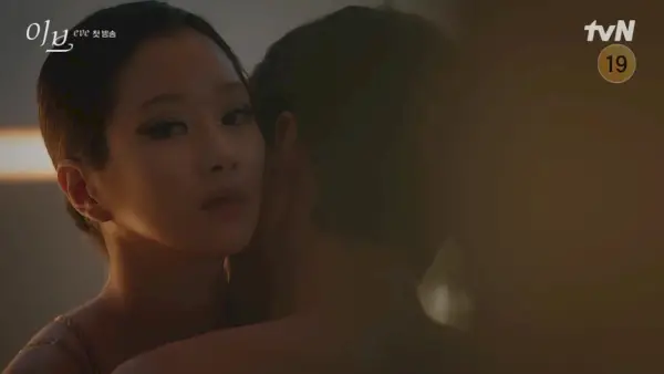 E poi è qui che le cose sono all'altezza del loro punteggio 19. Il simpatico maritino di La-el arriva tardi, lei lo porta nel suo camerino e lo spoglia rapidamente. Dice che è tutta eccitata dal suo tango e lui non resiste per più di un secondo bollente. Tuttavia, è tutta una trama, perché mentre sono nel bel mezzo, per così dire, Yoon-kyum fa capolino nel camerino e vede tutto. E c'è La-el, che lo fissa dritto negli occhi.