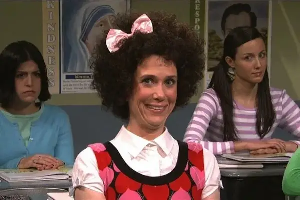Love her or hate her, the mischievous elementary schooler is one of Wiig’s most recognizable SNL characters. Gilly has a habit of disrupting class in elaborate and violent ways and only admitting to them when the teacher, played by Will Forte, scolds her. Gilly hosted the SNL holiday special in 2009 and appeared on the regular-season show five times, always using her catchphrases (and maybe the only words she knows): What? Mmm-hmm, and Sorry!