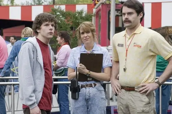 Wiig in relazione a SNL Bill Haders Co -star nella commedia romantica di Adventureland 2009 interpreta un manager dei parchi di divertimento della soft modifica. Sebbene sia stato messo all'ombra da suo marito e assistente, interpretato da Hader, nell'ombra, che Jesse Eisenberg e Kristen Stewart, in un parco a tema locale per un'estate folle.